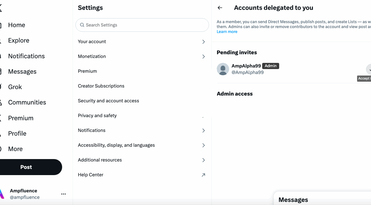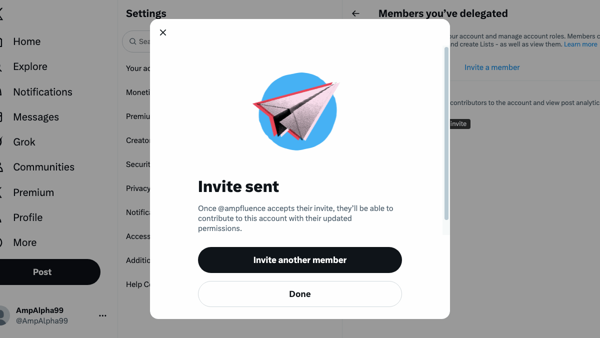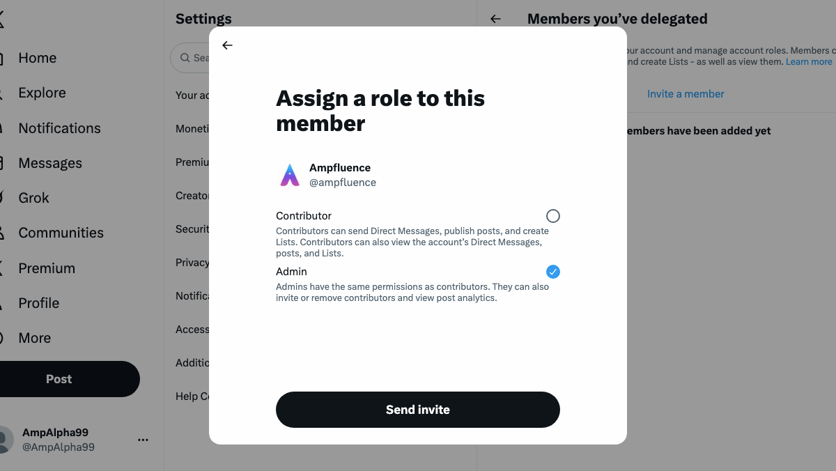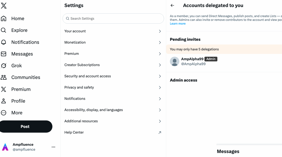 Important: Each X (Twitter) user can only be delegated to manage up to 5 accounts at a time. If they’re already managing 5, they’ll need to remove one before they can accept a new invitation.