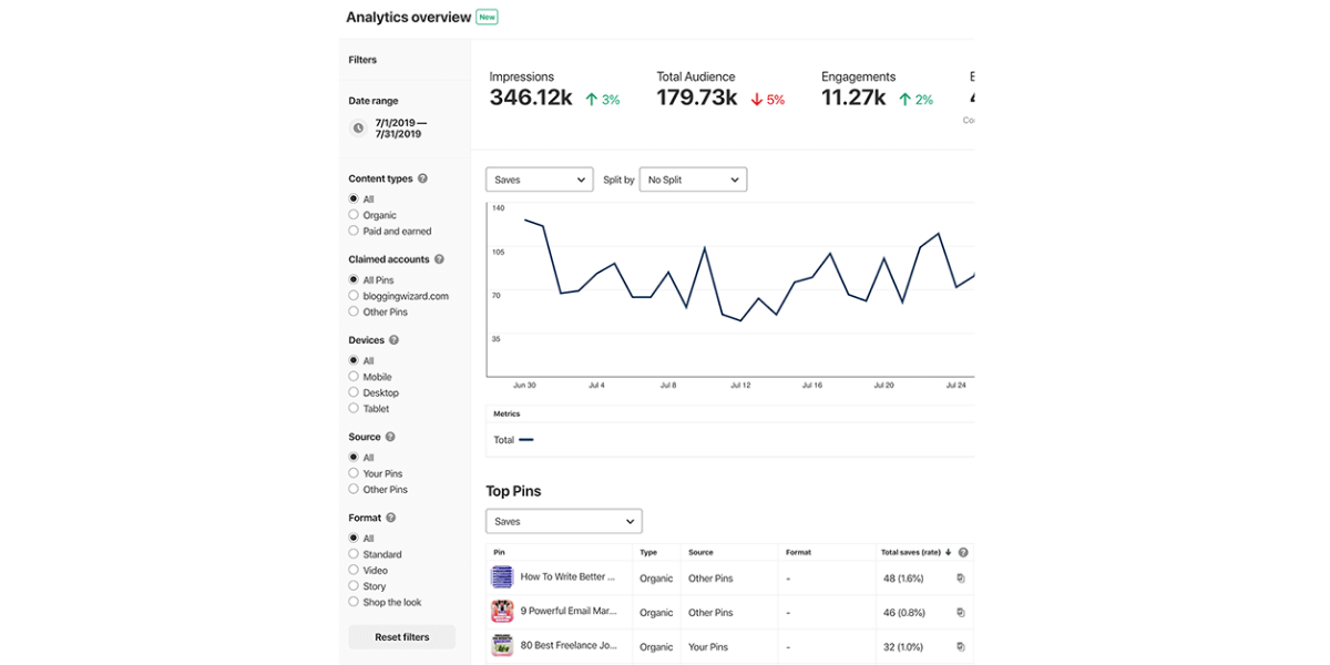 You can also get an overview and insight into your Pin’s performance through Pinterest Analytics. This allows you to identify whether the pin you created requires adjustment or not.