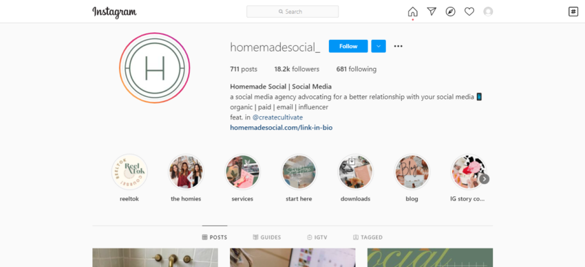 We use Instagram Reels to engage with our followers and post funny, behind-the-scenes, and helpful tip content for our (mostly) followers. Our followers tend to either be marketing-based themselves or are looking for social media marketing tips for their small business. Creating Instagram Reels can be a lot of work so the #1 tip we recommend is repurposing content from your other sources, such as TikTok videos (without the watermark – download before posting), blog posts, podcast episodes, and more. Repurposing content, in general, is a great tip for social media as it enables you to post more frequently without coming up with a completely new idea every time.