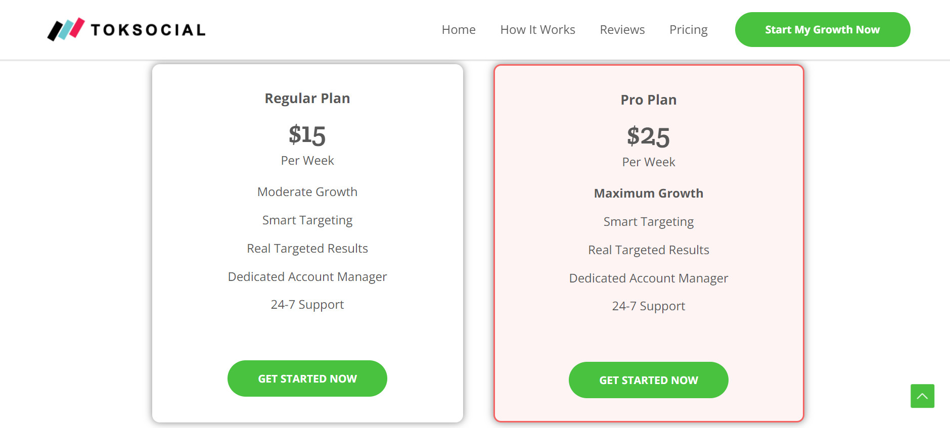 Tok Social provides 2 packages for moderate and maximum growth catering to different needs of a business under just $15 & $25 per week, respectively. With their smart targeting algorithm, they provide real followers without any bots.